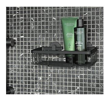 Deze driehoekige draadmand van Differnz is een stijlvolle toevoeging aan uw badkamer. De draadmand is gemaakt van aluminium en door het stoere mat zwarte design is het een echte toevoeging aan een moderne badkamer. De draadmand is 25 x 13,1 x 8 cm (b x l x h). De draadmand is eenvoudig bevestigen met de meegeleverde krachtige 3M montagestickers.