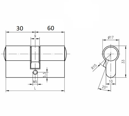 DOM Plura cilinder 30/60Â SKG2 zwart