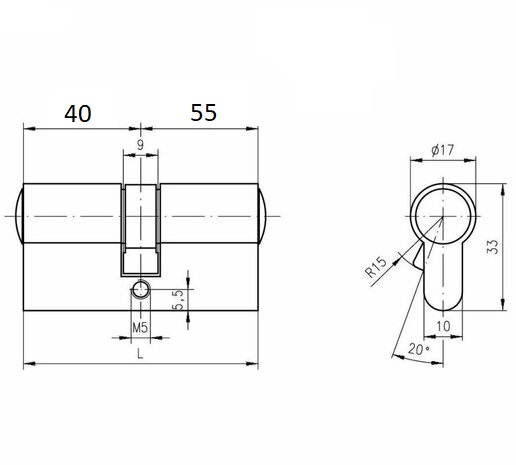 DOM Plura cilinder 40/55Â SKG2 zwart