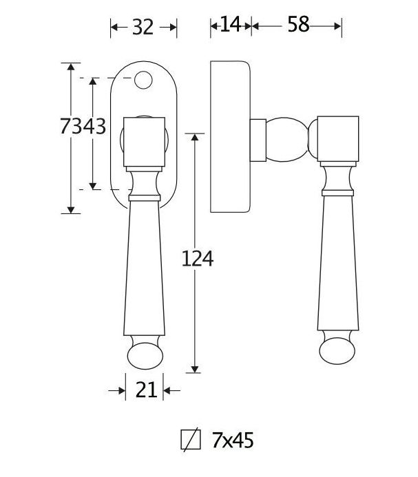 De maten van deze raamsluiting staan in de afbeelding.