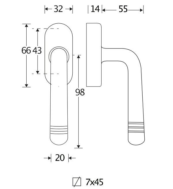 De maten van deze raamsluiting staan in de afbeelding.