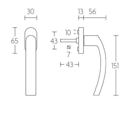 De maten van deze raamsluiting staan in de afbeelding. U kunt de stift naar de gewenste maat afzagen.