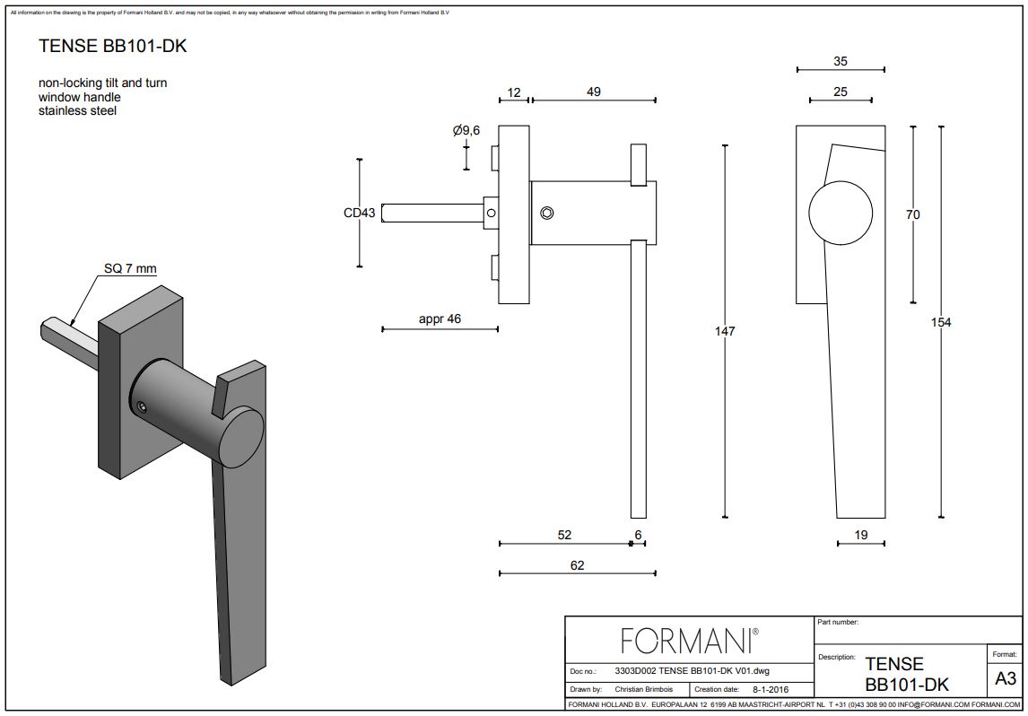 Dit is een draaikiepsluiting. Deze kunt u monteren op draaikiep ramen en deuren. (kiep kantel) De raamsluiting is van FORMANI uit de serie TENSE. Deze is ontworpen door Bertram Beerbaum.