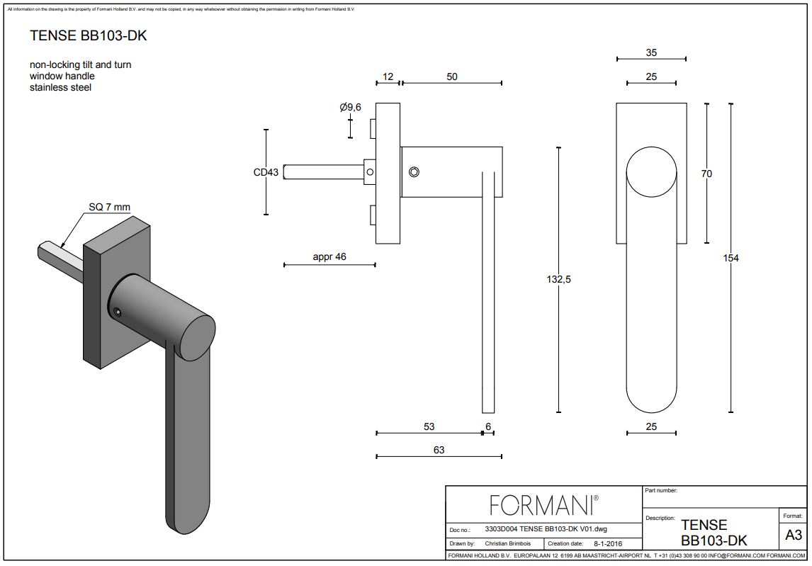 Dit is een draaikiepsluiting. Deze kunt u monteren op draaikiep ramen en deuren. (kiep kantel) De raamsluiting is van Formani uit de serie TENSE, van de designer