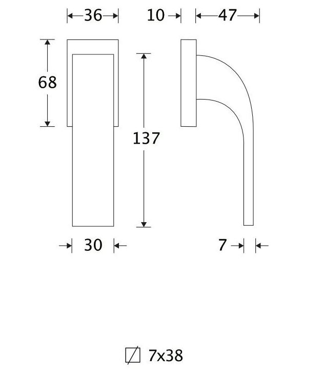 De maten van deze raamsluiting staan in de afbeelding.