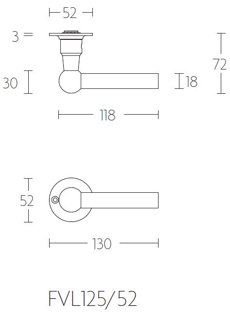 Enkele Deurklink FERROVIA FVL125/52 Op Rozet mat rvs
