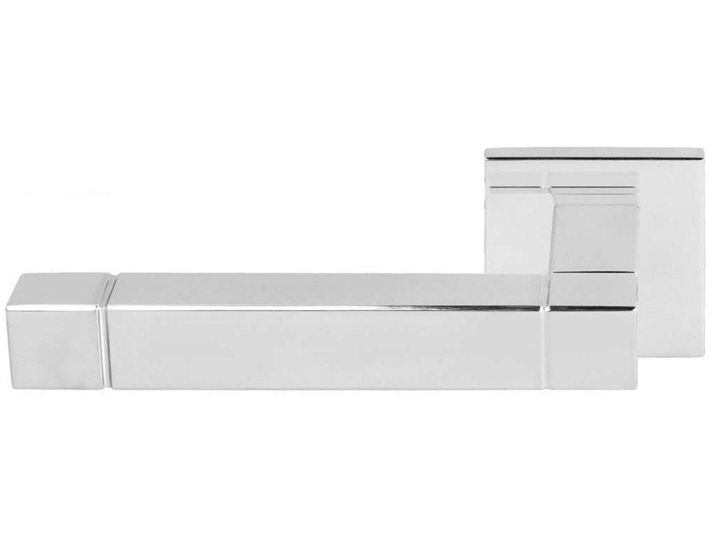 Enkele deurklink links SQUARE JB100 ongeveerd op rozet rvs gepolijst