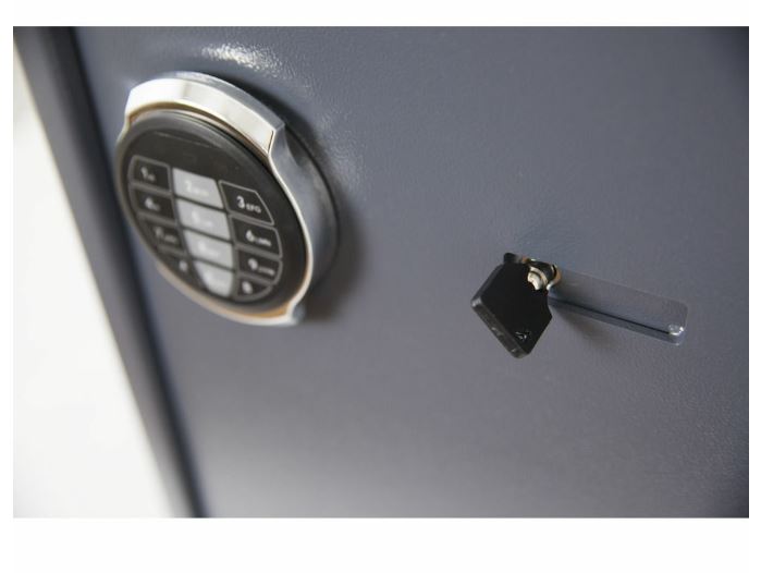 Standaard uitgevoerd met elektronisch slot (inclusief batterijen en noodsleutels).