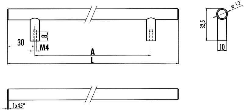 Deze greep is van staal gemaakt met rvs finish. L = Lengte 394 mm, afstand schroefgaten A = 334 mm en de Hoogte is 32.5 mm.