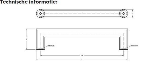 Buitenmaat L 336 mm gatafstand LA 320 mm hoogte 40 mm Ø 16 mm.