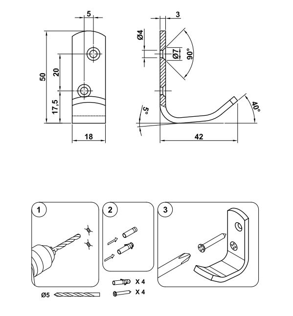 Er worden 2 witte schroeven en 2 pluggen bijgeleverd