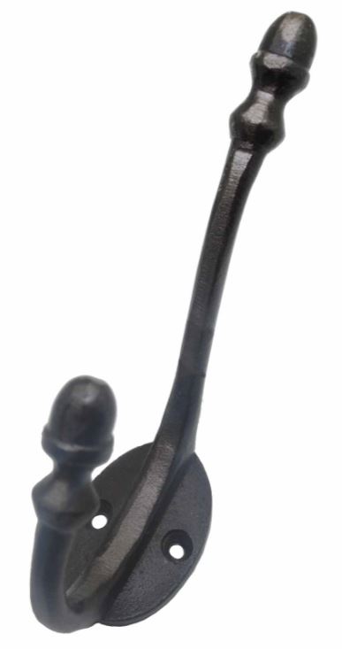 Deze kapstokhaak heeft een hoogte van 130 mm en steekt 95Â mm naar voren. De kapstokhaak wordt bevestigd met 2Â meegeleverde schroeven. De bevestigingsplaat van de kapstok is 31 x 46Â mm. Materiaal ijzer. De kleur van dit kapstokhaakje is ijzer grijs.