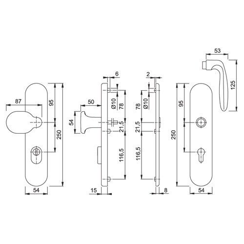 Dit veiligheidsbeslag van Hoppe heeft 3 SKG sterren is gemaakt van massief aluminium en voorzien van kerntrekbeveiliging van gehard staal. De maten van het buitenschild zijn 250 x 50 x 15 mm en heeft profiel wisselstift en stalen nokken. De maten van het binnenschild zijn 250 x 50 8 mm met zichtbare bevestiging. Dit veiligheidsbeslag is geschikt voor een deurdikte van 38 tot 45 mm.Voor dikkere deuren zijn verlengde krukstiften en bouten leverbaar.
