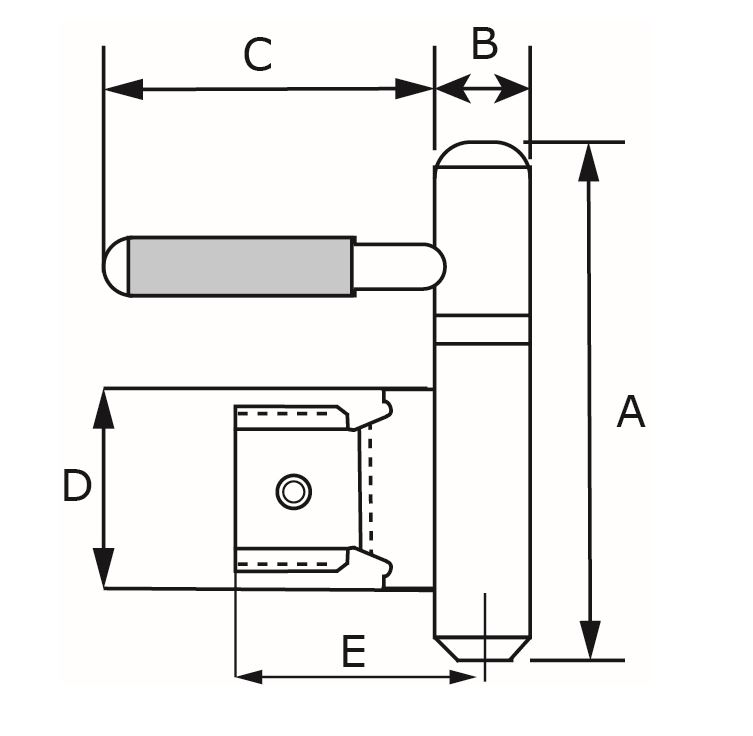 Inboorpaumelle 14Ø mm met zwarte nylon ring. Deze inboorpaumelle is geschikt voor houten deuren en metalen metselkozijnen.