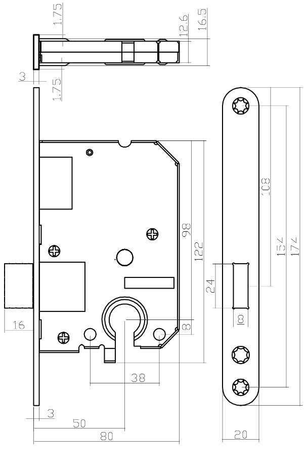 Dit kastslot is afsluitbaar met een sleutelgat maat op 55 mm en is geschikt voor profielcilinders. De sloten van Intersteel en de bijbehorende sluitplaten zijn verkrijgbaar in diverse uitvoeringen en draairichtingen. De doornmaat van dit slot is 50 mm en wordt geleverd inclusief sluitplaat en voorplaat. De zwarte voorplaat heeft een afmeting van 174 x 20 mm (hxb). U kunt dezelfde inbouw- en freesmaten gebruiken als een standaard woningslot.