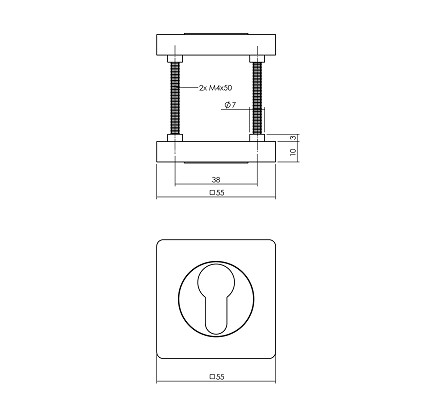 Intersteel cilinderrozetten verdekt 55x55x10mm met nokken wit