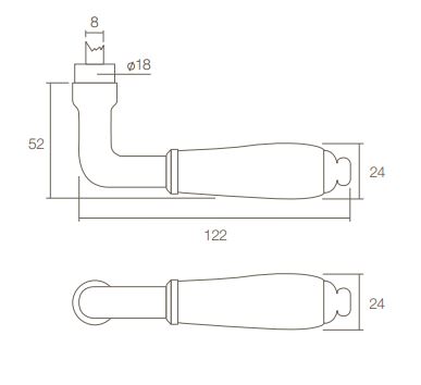 Deurklinken zonder rozet kunen worden gecombineerd met schilden en rozetten.