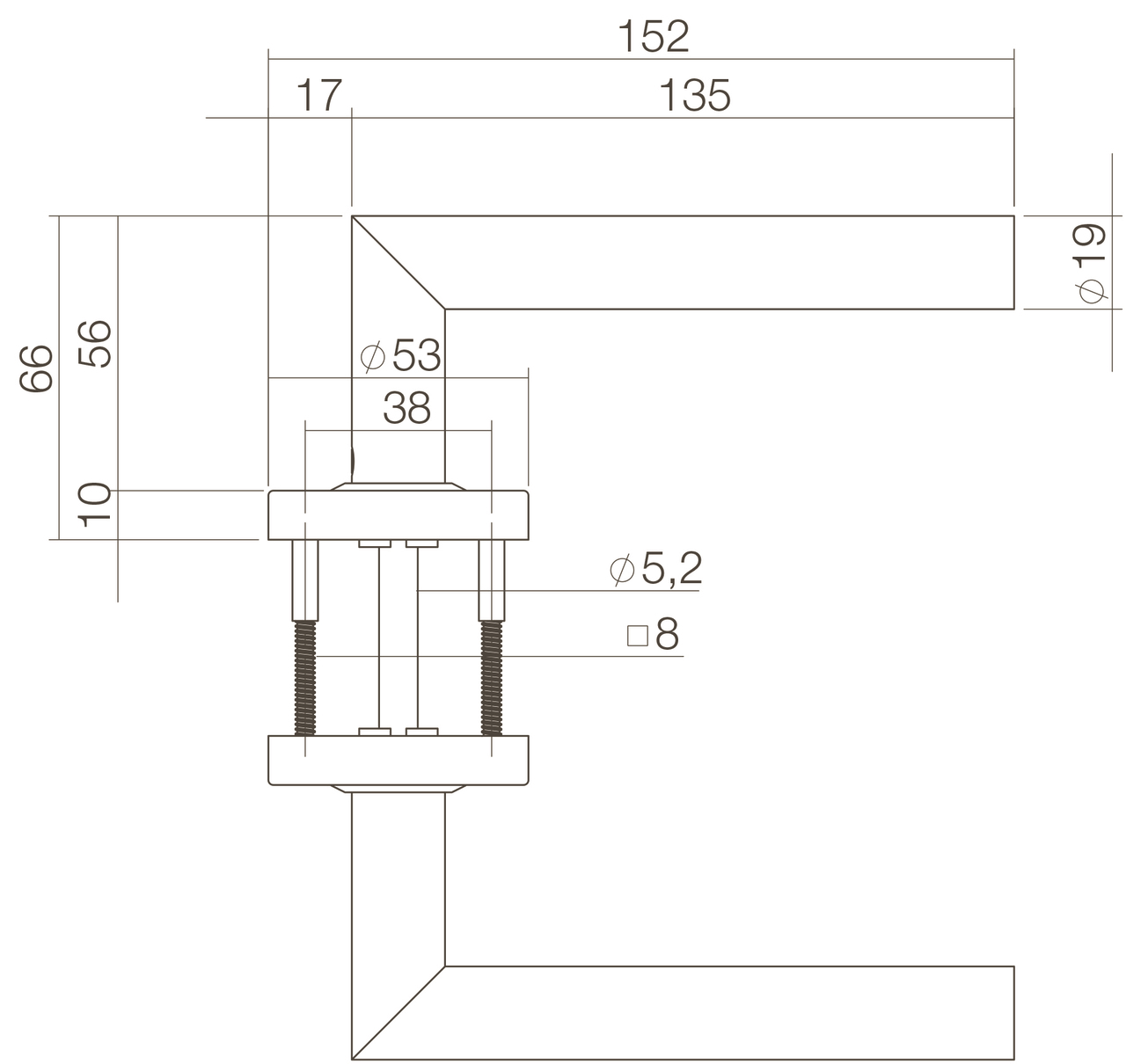 Intersteel deurklink recht Jura ø19mm op rozet met ring met veer rvs
