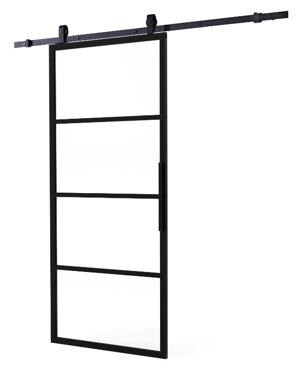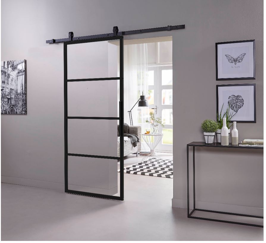 Intersteel DIY-schuifdeur Cubo zwart incl. transparant glas 2350x980x28mm + zwart ophangsysteem Basic Top