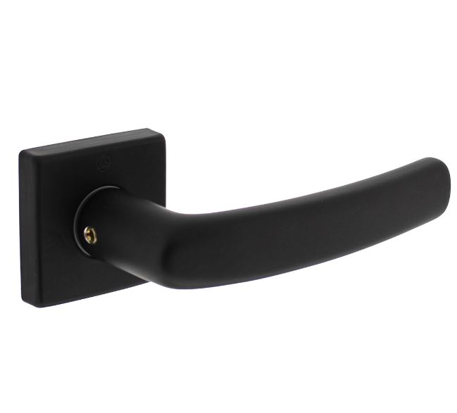 Deurkruk Denham op vierkante rozet is uitgevoerd in de kleur mat zwart. De rozet is voorzien van nokken, waardoor deze beter op zijn plek gehouden wordt. De deurklink is gemaakt van aluminium en geschikt voor deurdiktes 38 – 42 mm. De deurklink wordt geleverd per stuk, inclusief bevestigingsmateriaal.