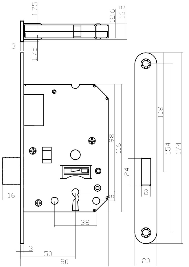 Dit kastslot is afsluitbaar met een sleutelgat maat op 55 mm en wordt geleverd met 2 klavier sleutels. De sloten van Intersteel en de bijbehorende sluitplaten zijn verkrijgbaar in diverse uitvoeringen en draairichtingen. De doornmaat van het slot is 50 mm en wordt geleverd inclusief sluitplaat en voorplaat. De witte voorplaat heeft een afmeting van 174 x 20 mm (hxb). U kunt dezelfde inbouw- en freesmaten gebruiken als een standaard woningslot.