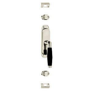 Met een raamespagnolet kunt u met één handeling het raam aan de boven- en onderzijde vergrendelen. Raamespagnoletten geven de (stolp)ramen met stangen en geleide hulzen een mooi en klassiek uiterlijk. Deze Ton 222 nikkel / ebbenhouten raamespagnolet in rechter uitvoering is naderhand gepolijst, waardoor hij een glanzend uiterlijk krijgt. Denk er altijd aan om een handgreep te gebruiken om het raam aan te trekken. Daarnaast is het mogelijk om een slot te bevestigen op de stang van de espagnolet.