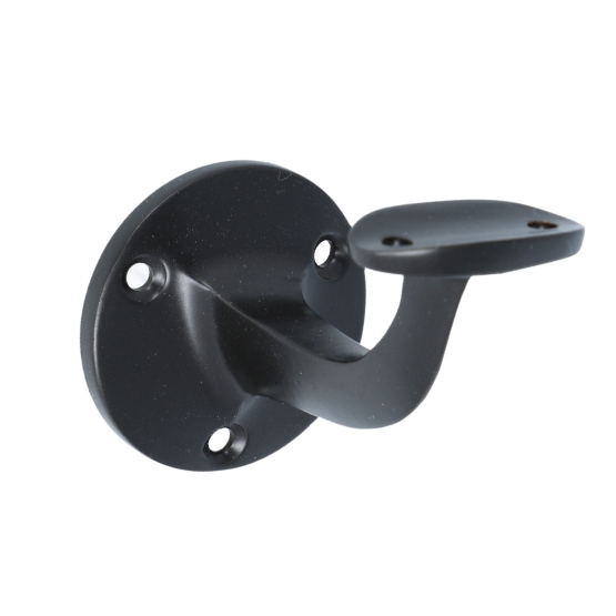 Met deze leuninghouder kunt u de leuning langs de muur begeleiden en biedt u extra veiligheid. Deze mat zwarte opschroevende leuninghouder heeft een hol zadel, waardoor deze alleen is voor een ronde leuning.