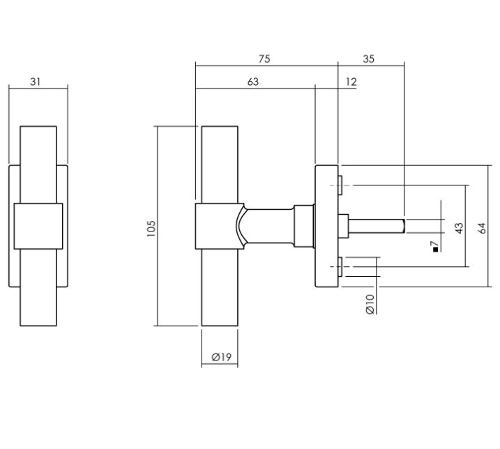 Intersteel raamkruk T-vorm Recht op rechthoekig rozet zwart