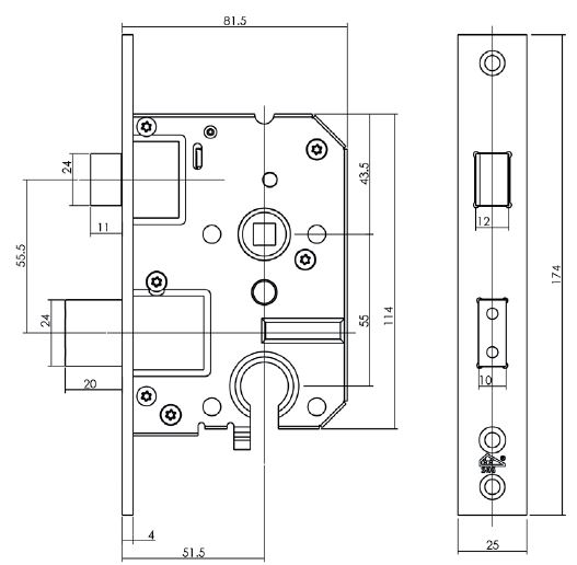 Intersteel SKG2 Veiligheidsslot PC55 mm met rechthoekige voorplaat  25 x 174 mm