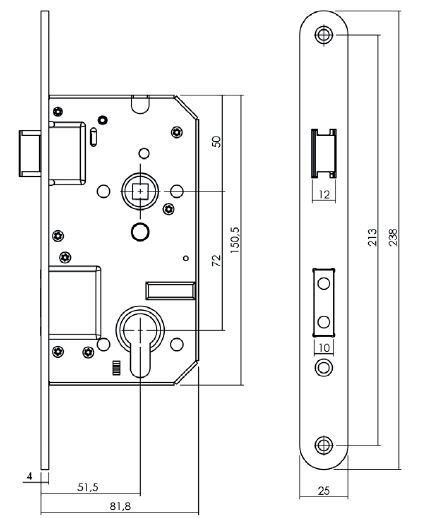 Intersteel SKG2 Veiligheidsslot PC72 mm met afgeronde voorplaat 25 x 238 mm