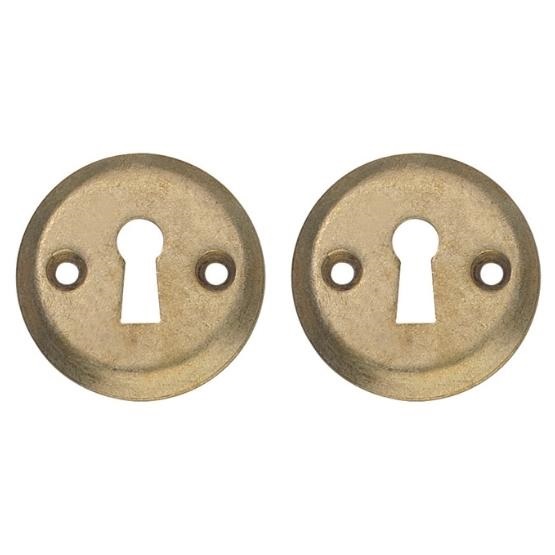 Deze ronde rozetten met sleutelgat zijn uitgevoerd in messing getrommeld en voorzien van schroefgaten. Deze rozetten worden per paar geleverd.