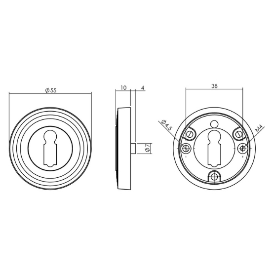 Intersteel sleutelrozetten verdekt met rillen ø54x9mm en nokken oud grijs