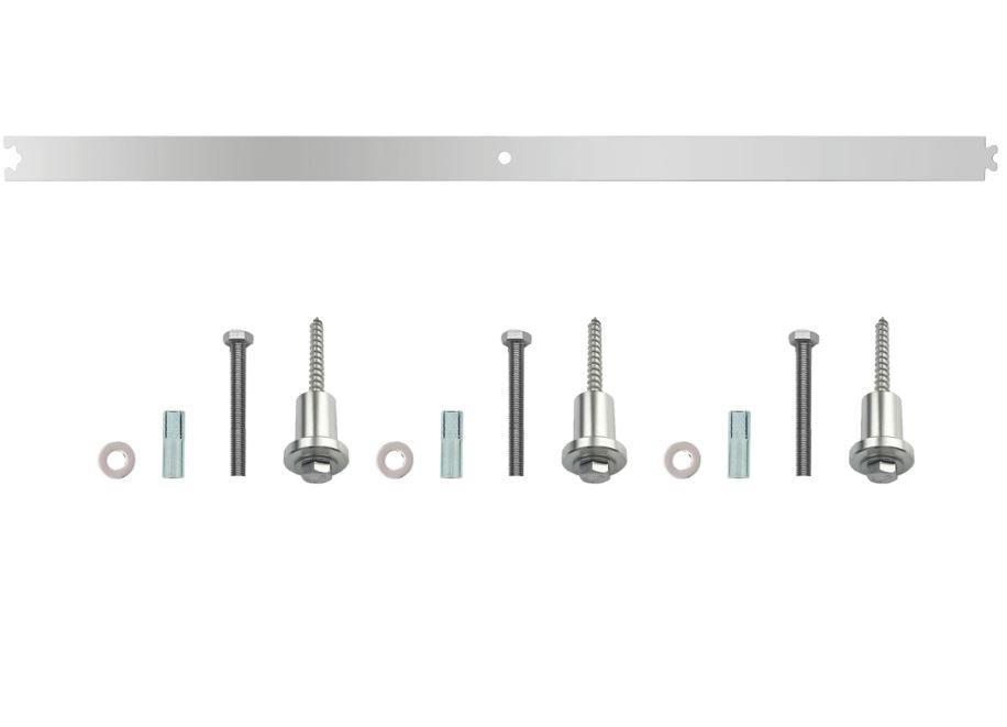 Voor verlenging van dit schuifdeursysteem kunt u gebruik maken van tussenrails. Deze roestvast staal geborstelde rail is verkrijgbaar in een lengte van 90 cm. Daarnaast kunt u de bijbehorende accessoires als een set van twee hangrollen en een set geleide- en afstandhouders apart bijbestellen. Op deze manier kunt u het schuifdeursysteem bijvoorbeeld ook gebruiken voor dubbele deuren. Dit product wordt geleverd inclusief bevestigingsmateriaal.
