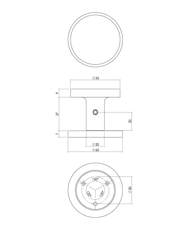 Deze voordeurknop bestaat uit aluminium en is hierdoor licht van gewicht en sterk tegelijk. De knop is vervolgens voorzien van een zwarte coating. Hij heeft een diameter van 55 mm en de achterplaat is 60 mm. Montage is éénzijdig en eenvoudig met het bijgeleverde bevestigingsmateriaal.