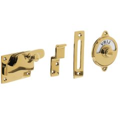 Een wc-overslag zorgt ervoor dat u een deur gemakkelijk kunt openen en afsluiten. Deze wc-overslag is uitgevoerd in messing en naderhand voorzien van een zwarte coating. Daarnaast is deze toiletsluiting voorzien van emaille plaatje met de tekst vrij / bezet. Deze wc-overslag vlak is geschikt voor naar binnendraaiende toilet-/badkamerdeuren en is zowel links als rechts op de deur te plaatsen. Tevens is deze wc-overslag voorzien van schroefgaten en wordt geleverd inclusief sluithaak en sluitplaat, zodat u zelf de keuze kunt maken of u de sluiting op of in het kozijn wilt monteren. Tot slot bevat deze set bevestigingsmateriaal voor montage.