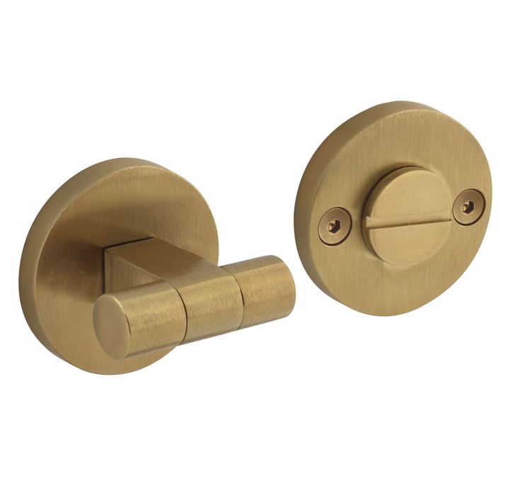 Deze toilet-/badkamersluiting met bediening rechts is speciaal ontworpen om te combineren met deurkruk Shiraat, winnaar van de Red Dot Design Award 2022. De wc-sluiting is vervaardigd uit roestvast staal en naderhand voorzien van een hoogwaardige PVD coating in de kleur mat messing. De rozet heeft een afmeting van ø55×8 mm en is éénzijdig verdekt. Dit betekent dat maar één kant van de deur zichtbare schroefgaten heeft. Dit product wordt per set geleverd inclusief bevestigingsmateriaal voor montage.