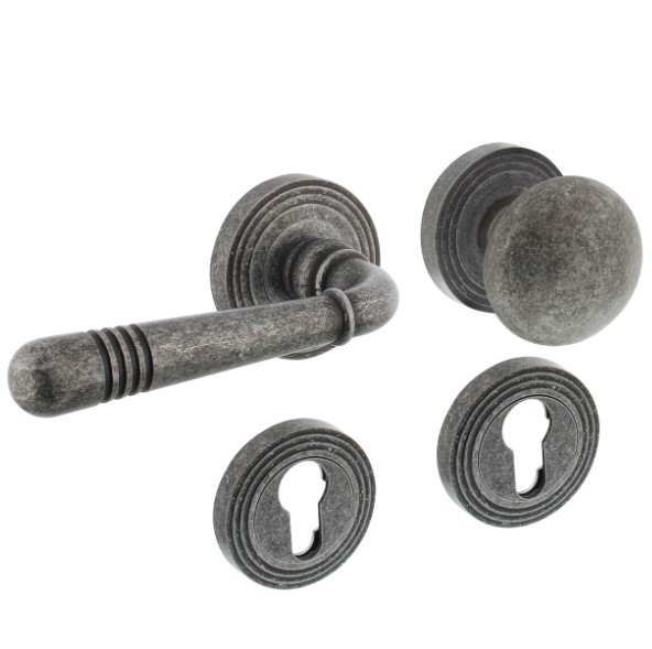 Intersteel wisselgarnituur links Helena op rond rozet met ril + pc-plaatjes oud grijs