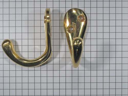 Kapstokhaak enkel, messing. Foto is genomen op ruitjes van 5 x 5 mm.