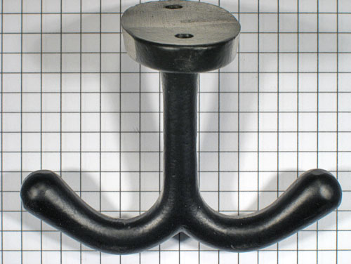 Deze kapstokhaak is ijzer zwart, 60 mm hoog en voorzien van 2 haken.