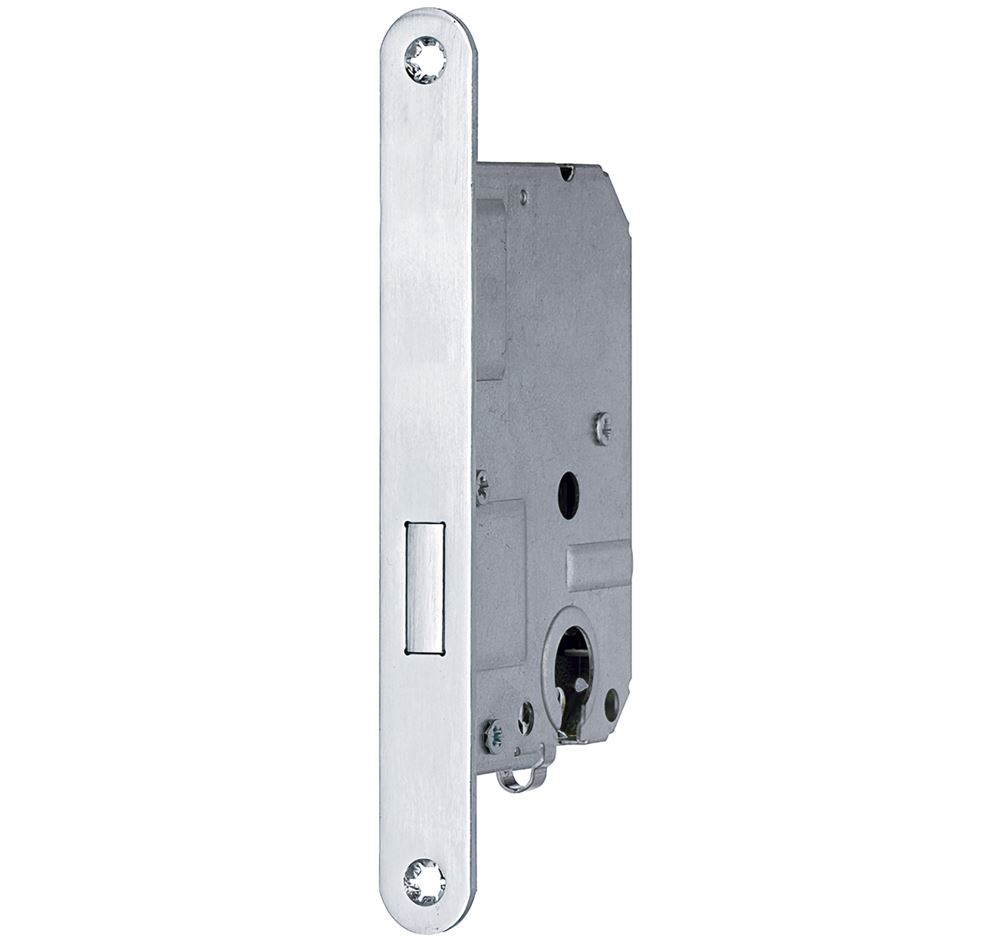 Onze sloten kunnen worden gemonteerd op zowel binnen- als buitendraaiende deuren en kan zowel links als rechts geplaatst worden. De dagschoot is gemakkelijk om te bouwen door deze naar buiten te trekken en te keren. De sluitplaat wordt standaard bijgeleverd. Dit slot is van het merk Mauer, ook te zien in de voorplaat.