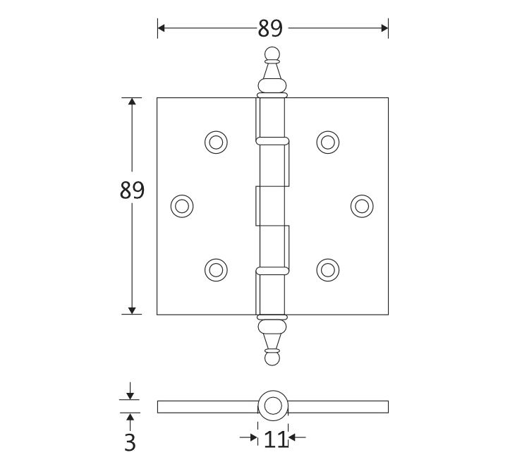 De maat van dit scharnier is 89 x 89 mm.