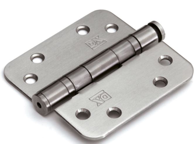 Dit kogellagerscharnier heeft ronde hoeken. De maat van dit scharnier is 89 x 89 mm. Het materiaal is rvs geborsteld met losse rvs pen.