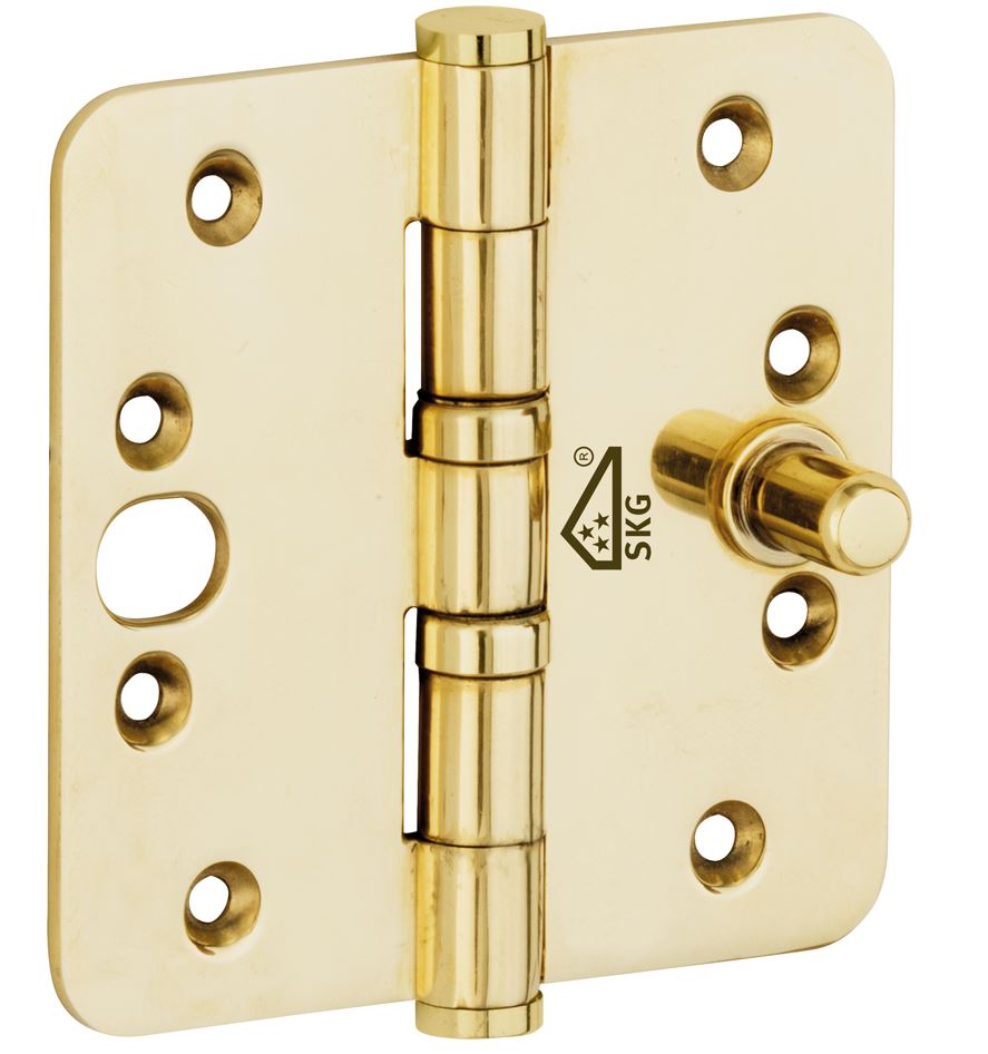 Kogellagerscharnier SKG3 89×89 ronde hoek vlak messing ongelakt