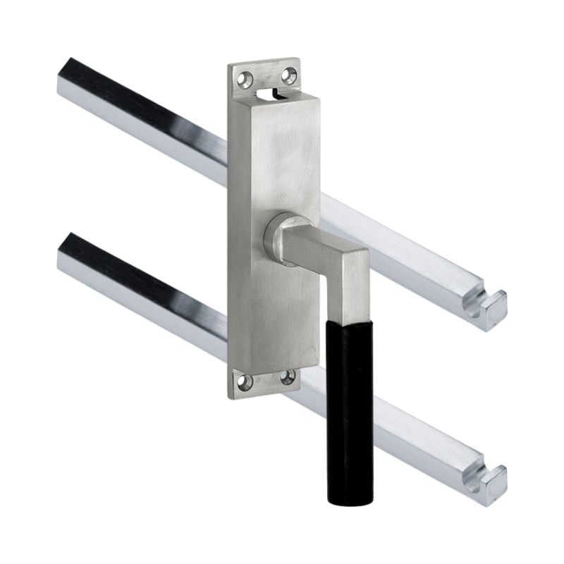 Model Bauhaus ebben komt uit onze Mi Satori collectie. Deze variant kan toegepast worden op openslaande dubbele ramen en stolpramen. En kan ook toegepast worden op openslaande tuindeuren, dubbele buitendeuren en stolpdeuren. Krukespagnolet incl. 3 geleiders, 2 eindstukjes en 2 stangen (1,10 & 1,40mtr).