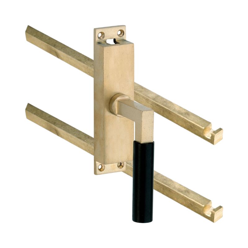 Model Bauhaus ebben komt uit onze Mi Satori collectie. Deze variant kan toegepast worden op openslaande dubbele ramen en stolpramen. En kan ook toegepast worden op openslaande tuindeuren, dubbele buitendeuren en stolpdeuren. Krukespagnolet incl. 3 geleiders, 2 eindstukjes en 2 stangen (1,10 & 1,40mtr).