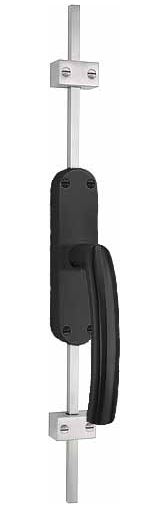 Deze kruk-espagnolet wordt geleverd inclusief vier geleiders, twee eindstukjes en twee stangen geschikt tot 2900 mm. Het materiaal is mat rvs met een zwarte coat.