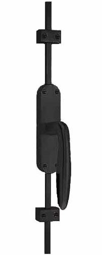 Deze kruk-espagnolet wordt geleverd inclusief vier geleiders, twee eindstukjes en twee stangen geschikt tot 2900 mm. Het materiaal is mat rvs met een zwarte coat.