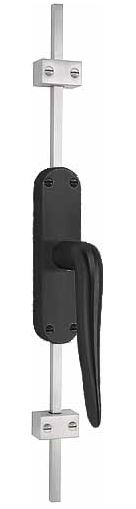 Deze kruk-espagnolet wordt geleverd inclusief vier geleiders, twee eindstukjes en twee stangen geschikt tot 2900 mm. Het materiaal is mat rvs met een zwarte coat.