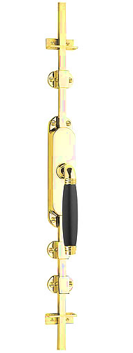 Deze kruk-Espagnolet is van Formani uit de serie Timeless, 1934 Stokstraat. Deze kruk-espagnolet wordt geleverd inclusief vier geleiders, twee eindstukjes en twee stangen geschikt tot 2900 mm. Het materiaal is messing ongelakt en Ebbenhout.