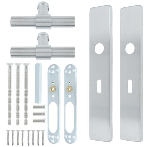 Deurkruk Pesaro op rechthoekig schild is vervaardigd uit roestvast staal en is naderhand geborsteld. Deze deurklink wordt geleverd met schild en heeft een stalen onderconstructie. De h.o.h. maat van de deurklink tot het sleutelgat is 56 mm. Geschikt voor een deurdikte van 38 – 42 mm